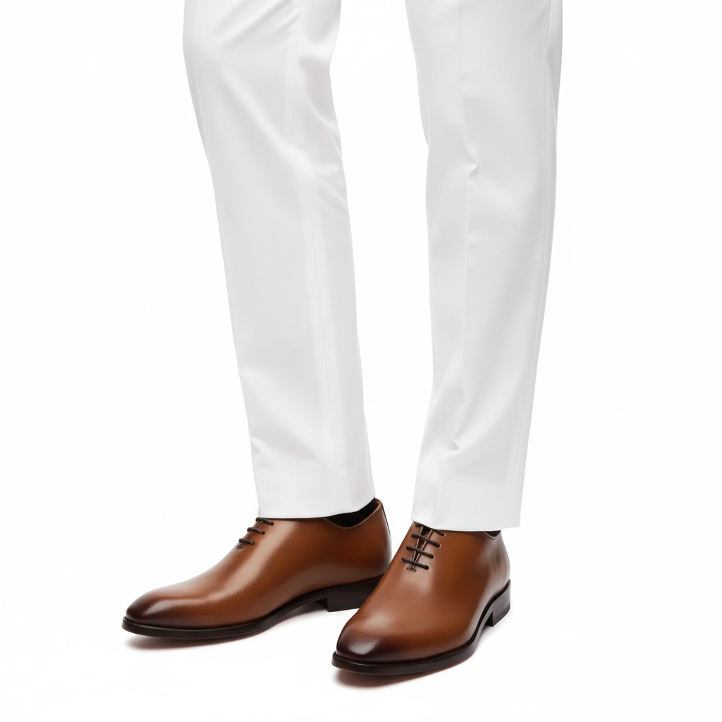 Experience timeless elegance with this Zuvera Elite formal shoe, crafted for refined formal wear. Made from high-quality genuine leather, it features a smooth, polished finish that enhances its sophisticated appeal. The clean, minimal design offers a sleek silhouette perfect for business and special occasions. Designed for comfort, it includes a cushioned insole and a sturdy sole for all-day wear. Its versatile tan shade pairs effortlessly with both formal and smart-casual outfits. A perfect balance of style, durability, and craftsmanship for the modern gentleman.