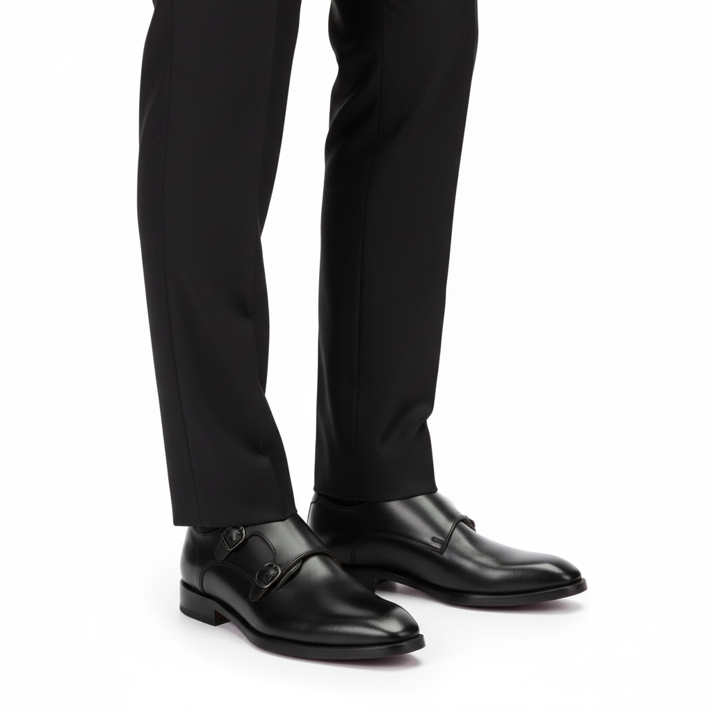 Step into timeless sophistication with this premium double monk strap shoe, designed for the modern gentleman. Crafted from high-quality genuine leather, it features a sleek polished finish that adds a refined edge to any formal outfit. The distinctive dual buckle design offers both style and a secure, comfortable fit. Its clean silhouette makes it perfect for business meetings, formal events, or evening wear. Built with a durable sole and cushioned interior, it ensures all-day comfort without compromising elegance. A perfect blend of luxury, craftsmanship, and versatility.